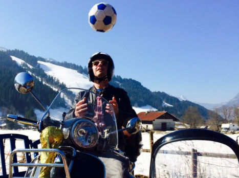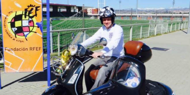 כריס האלט האנגלי עלה על וספה ויצא למסע בין המשתתפות במונדיאל 2014, טיול שיסתיים רק בטורניר בברזיל